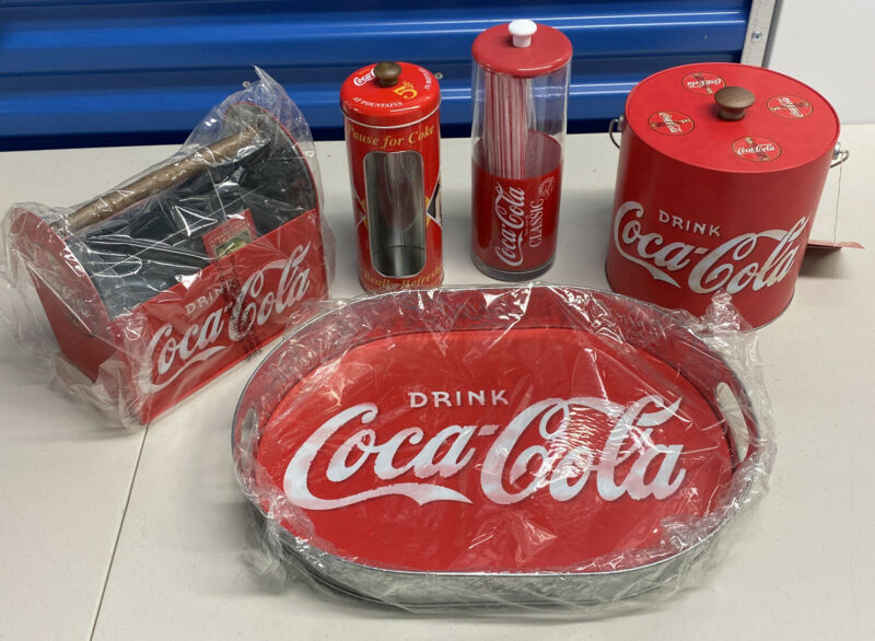 Title (ebay affiliate link): Set Of Coca Cola Outdoor Items Ice Bucket, Tray, Straw Holder, Utensil Caddy