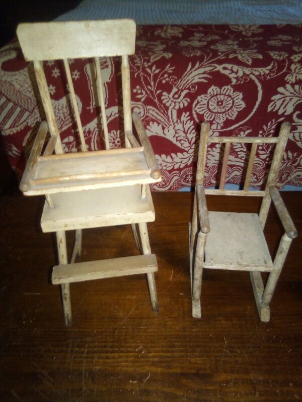 Title (ebay affiliate link): Salesman Samples Matching White Wash Wooden Doll High Chair & Rocking Chair