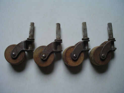 Title (ebay affiliate link): Vintage Lot of 4 Old Metal Furniture Casters Wood Wheels 1 1/8"