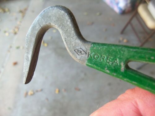 vintage METAL tool SK WITH HOOK END & GREEN HANDLE