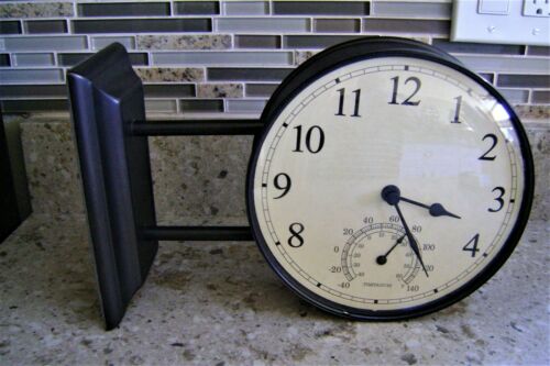 Large Heavy 9" Bronze Pottery Barn Double Wall Mounted Clocks w/Thermometers