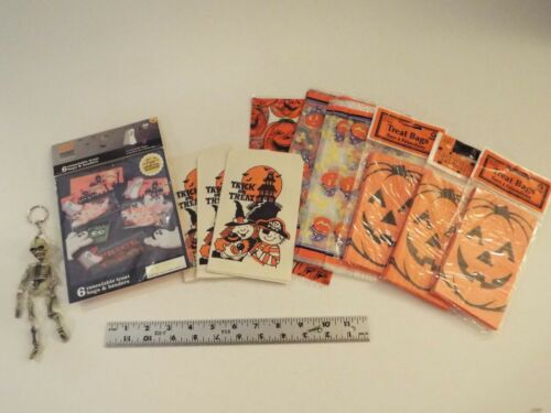LOT-VINTAGE & NEW HALLOWEEN TREAT BAGS-PAPER-PLASTIC-SKELETON KEY RING-CHAIN***