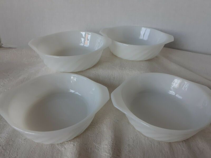 Title (ebay affiliate link): Vtg.Fire King Anchor Hocking White Swirl Individual Casserole Dishes- Set of 4
