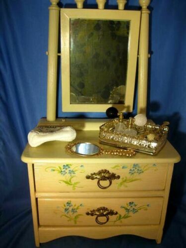 Antique Child''s Doll Toy Stick and Ball Dresser with Purse & Vanity Set Good Con