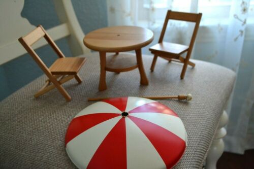 Title (ebay affiliate link): STROMBECKER WOODEN DOLL HOUSE PATIO FURNITURE FOLDING CHAIRS TABLE AND UMBRELLA