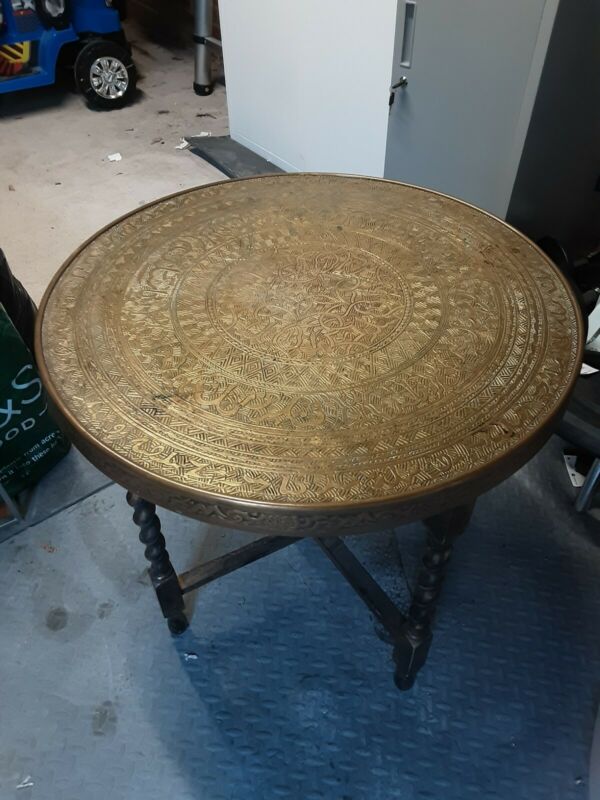 Title (ebay affiliate link): Antique Brass Top Circular - Moorish or Middle Eastern - Fold Away Table