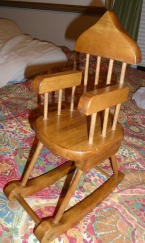 Title (ebay affiliate link): Vintage Doll Rocking Chair Wooden Handmade ! Stained Light Oak 13" HI by 9" WD
