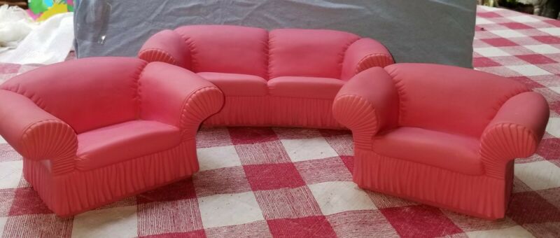 Vintage 1988 Pink Vinyl Doll Barbie Doll Furniture MTC Sofa Chair Set