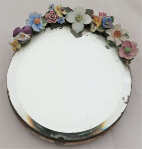 Title (ebay affiliate link): SMALL ROUND VINTAGE BARBOLA MIRROR EASEL STAND 4" DIAMETER PORCELAINE FLOWERS