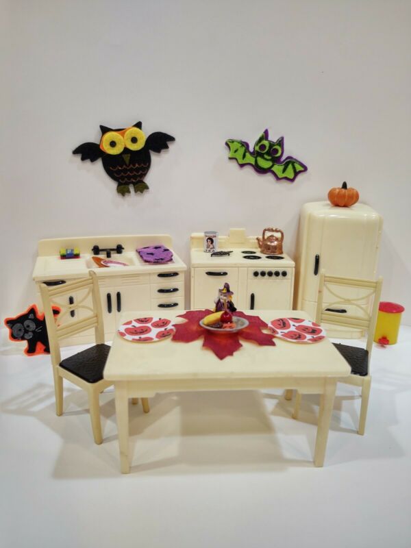 Title (ebay affiliate link): Complete KITCHEN SET Ideal w/ Accessories Vintage Miniature Dollhouse Furniture