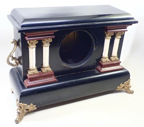 Title (ebay affiliate link): ANTIQUE BLACK PILLAR MANTEL SHELF CLOCK CASE PARTS REPAIR