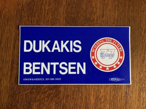 Title (ebay affiliate link): 88 Michael Dukakis Lloyd Bentsen President Campaign bumper sticker ibew 77 union