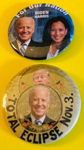 Title (ebay affiliate link): Two 2 1/4" Biden-Harris and Biden Overtaking Trump Campaign Pinback Buttons