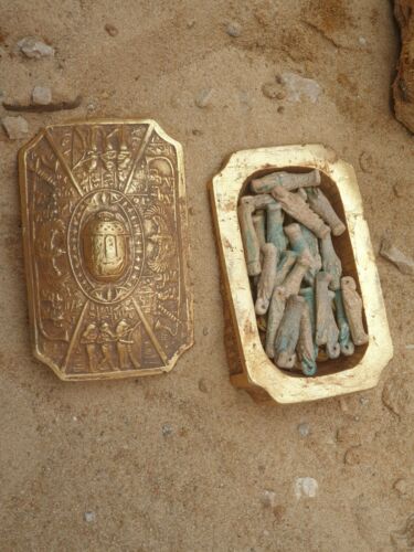 Title (ebay affiliate link): Rare Antique Ancient Egyptian Jewelry Box 55 Scarabs + 22 Ushabtis Gods 1860 BC