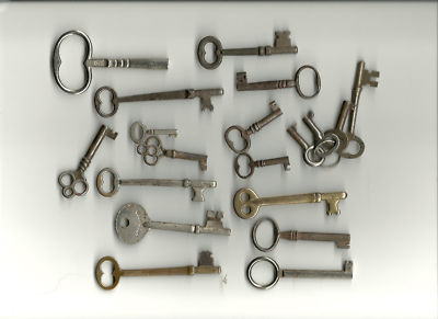19 different old antique keys brass clock skeleton