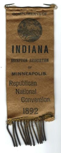 Title (ebay affiliate link): 1892 REPUBLICAN NATIONAL CONVENTION - INDIANA COMMITTEE RIBBON - HARRISON YEAR