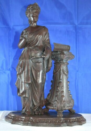 Title (ebay affiliate link): ANTIQUE BRONZE NEO-Classical Woman, PEDESTAL W/Books LOTS Of DETAILS 10 1/2"