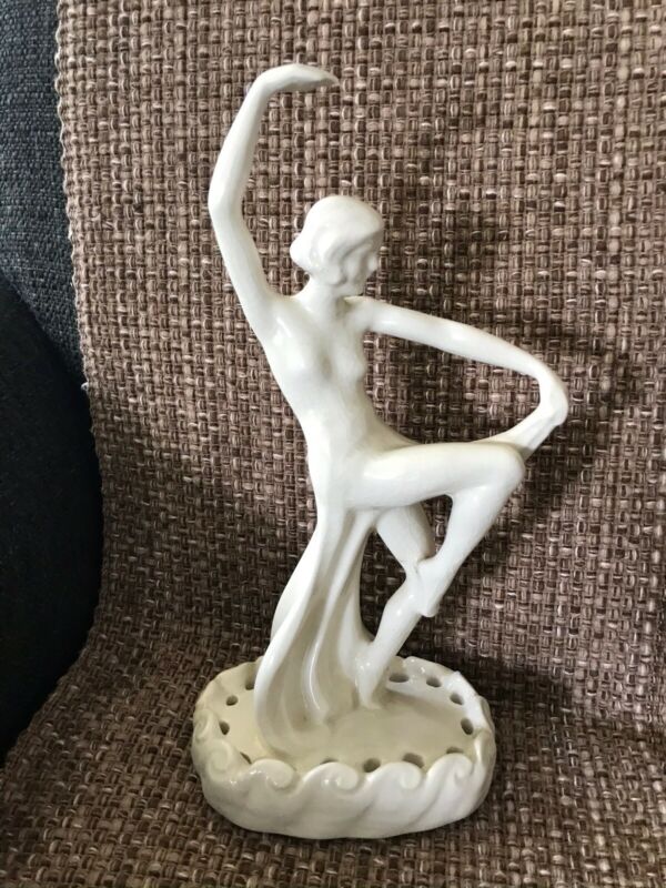 Title (ebay affiliate link): VINTAGE GLAZED WHITE 12” ART DECO WOMAN FIGURINE