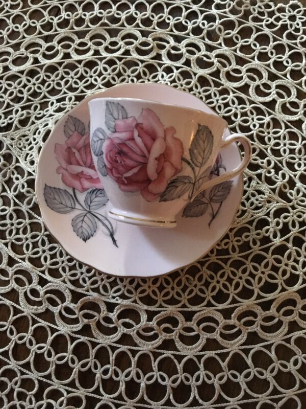 Stunning Vintage Colelough English Tea Cup & Saucer Cabbage Rose