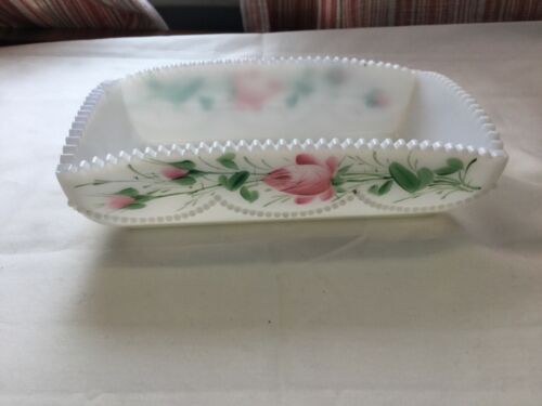 Antique Victorian Painted Milk Glass Trinket Vanity Dressing Table Box sawtooth