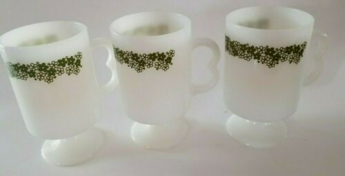 Vtg Pyrex Spring Blossom Green Crazy Daisy footed coffee mugs Lot of 3