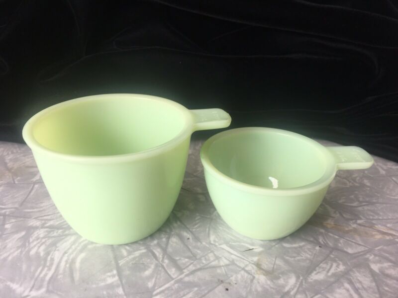 Title (ebay affiliate link): 2 Vintage Jeannette Jadeite Measuring Cups 1/2 Cup And 1 Cup