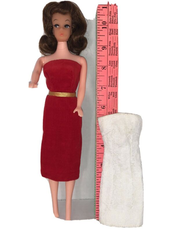 Title (ebay affiliate link): 2 Vintage Barbie Clone MARX Hong Kong Tag Dress Red Velvet Lace Doll Nt Included