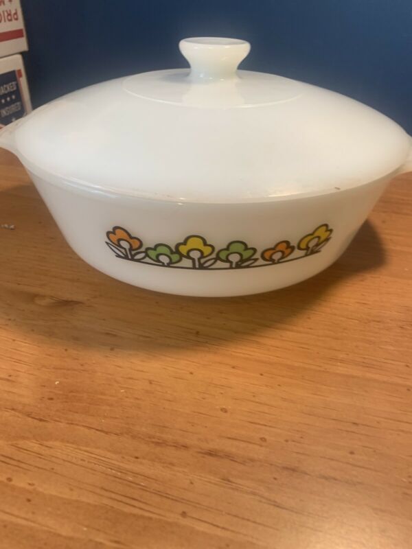 Vintage Fire King Glass Casserole Dish 1.5 Qt 437 Oven Ware w/ Lid Summerfield