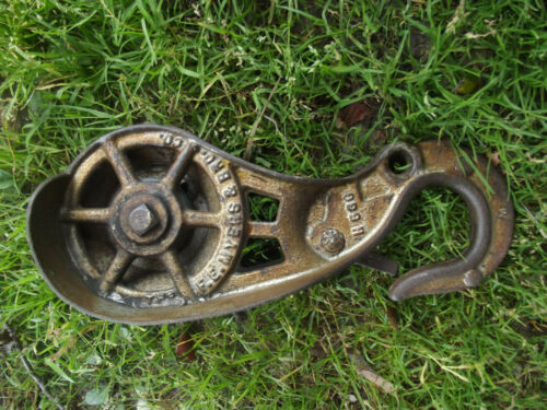 Title (ebay affiliate link): F. E. MYERS HAY TROLLEY HOOK PULLEY ASHLAND OH BARN FARM TOOL RUSTIC STEAMPUNK