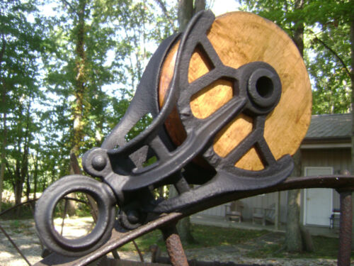 Title (ebay affiliate link): Antique Vintage Cast Iron Myers OK Hay Trolley Line Pulley Barn Farm Tool