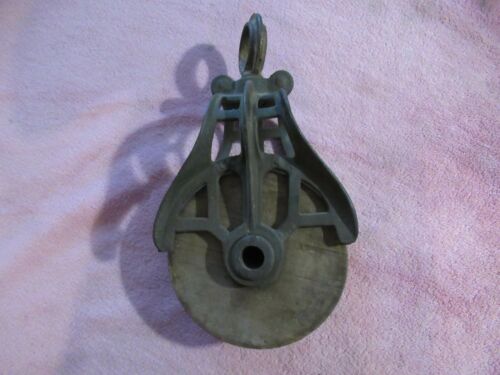 Title (ebay affiliate link): Antique Vintage Myers OK 5 Barn Pulley Hay Cast Iron Wood Steampunk Great Piece!