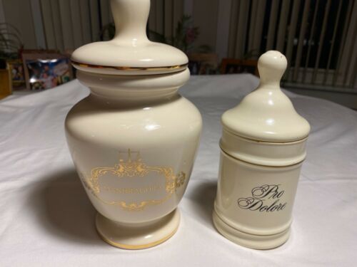Title (ebay affiliate link): PAIR OF VINTAGE APOTHECARY JARS Pro Dolore & Mandragora LILLY