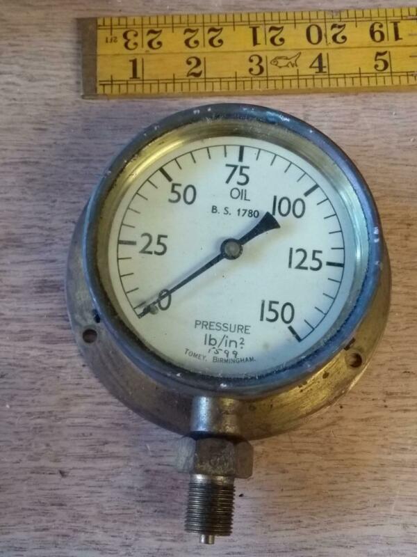 Vintage brass 4" oil pressure gauge 0 - 150 psi - Steampunk