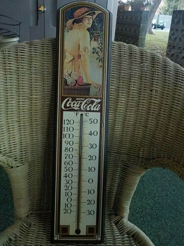 Vintage COCA COLA THERMOMETER Advertising COKE Soda Pop Wood Drink COCACOLA Sign