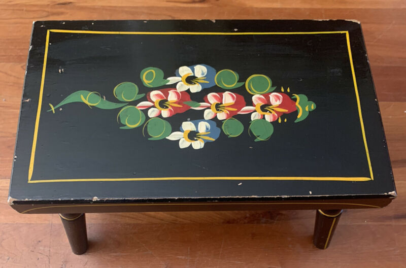 Title (ebay affiliate link): Vintage Painted Ebersol Black Dutch Floral Wooden Foot Stool Bench Folk 1969