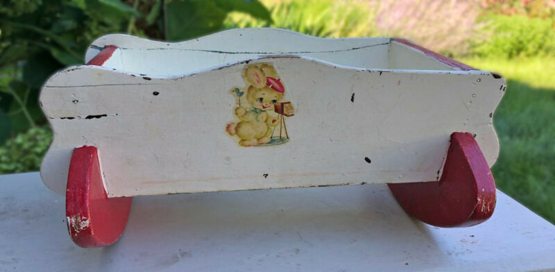 Antique Wooden Rocking Doll Cradle Handmade with Decals