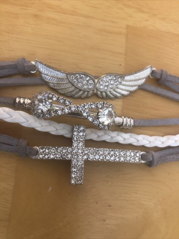 Title (ebay affiliate link): Infinity Cross Angel Wings Heather Grey bracelet antique silver color charms