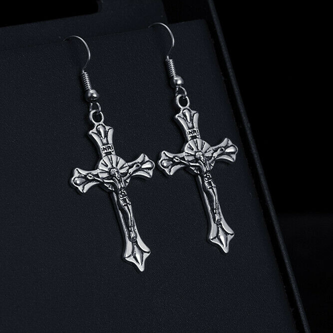 Title (ebay affiliate link): Trendy Vintage Cross Shape Dangle Antique Silver Plated Earrings for Women Girl