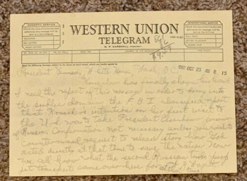 Title (ebay affiliate link): 1962 WESTERN UNION TELEGRAM TO PRESIDENT JFK KENNEDY re; KRUSCHEV