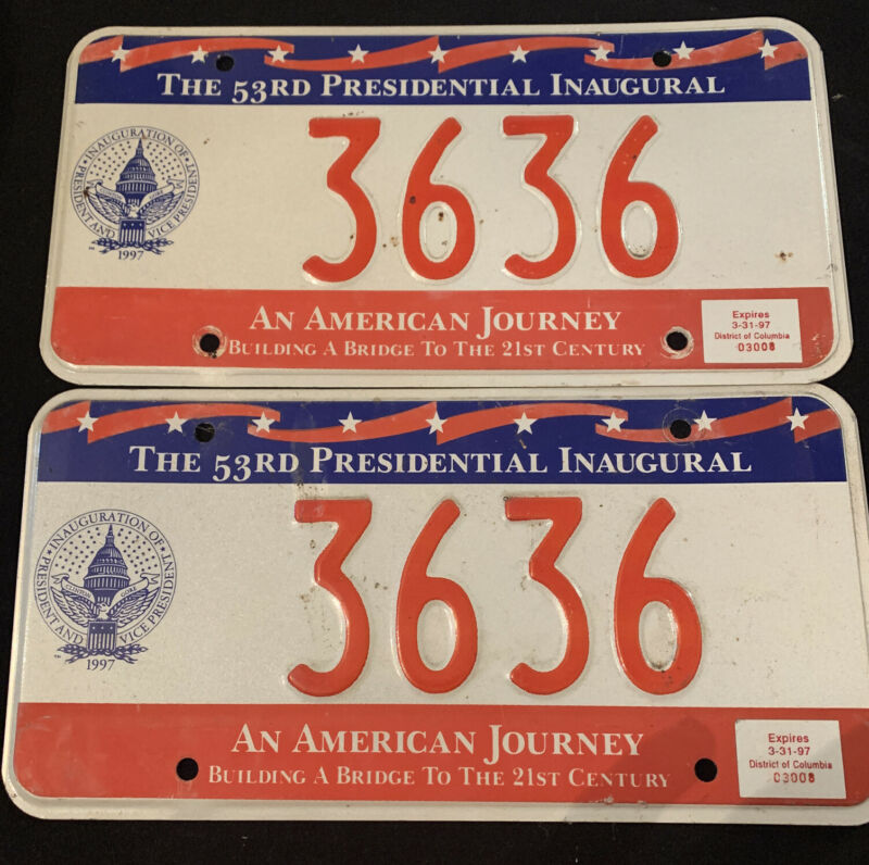 Title (ebay affiliate link): PAIR 1997 BILL CLINTON Inaugural License Plates Washington DC 2537