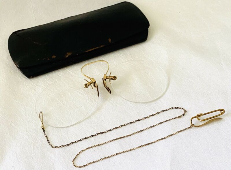 Title (ebay affiliate link): ANTIQUE Gold Tone / Filled? STEVENS & CO Pince Nez SPECTACLES with HAIRPIN Chain