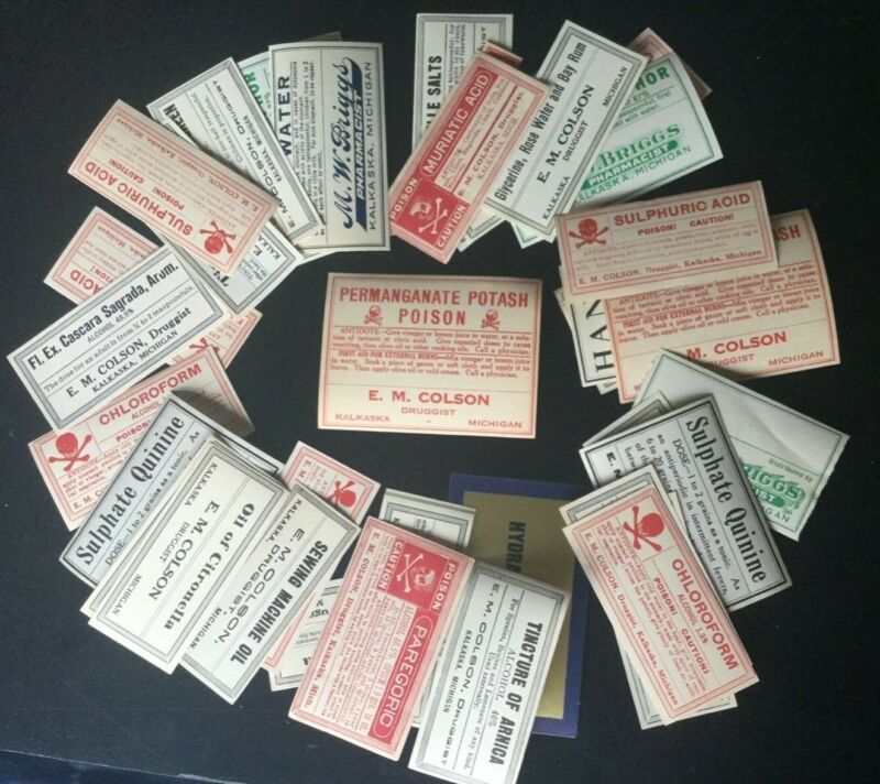 Title (ebay affiliate link): 40+ Vintage Pharmacy Drug Store Medicine & POISON LABELS - early to mid 1900''s