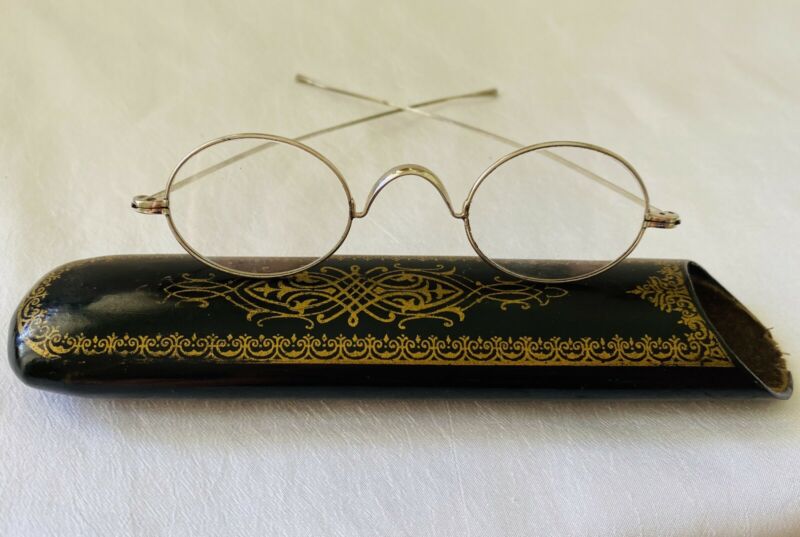 Title (ebay affiliate link): Antique Silver Tone CIVIL WAR FRANKLIN CURLY NOSE Looking SPECTACLES with Case