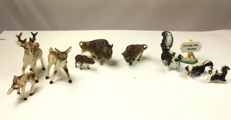 3 Vintage Miniature Bone China DEER ,BUFFALO, SKUNK..FAMILIES ~Japan