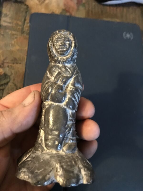 Early Folk Art Carved 4 Inch Tall Soap Stone Eskimo Figure Detailed Must See