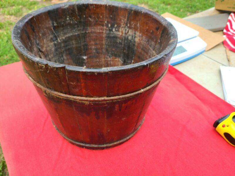 Title (ebay affiliate link): Antique Vintage Wooden Farm Bucket Wood Handle Metal Straps.