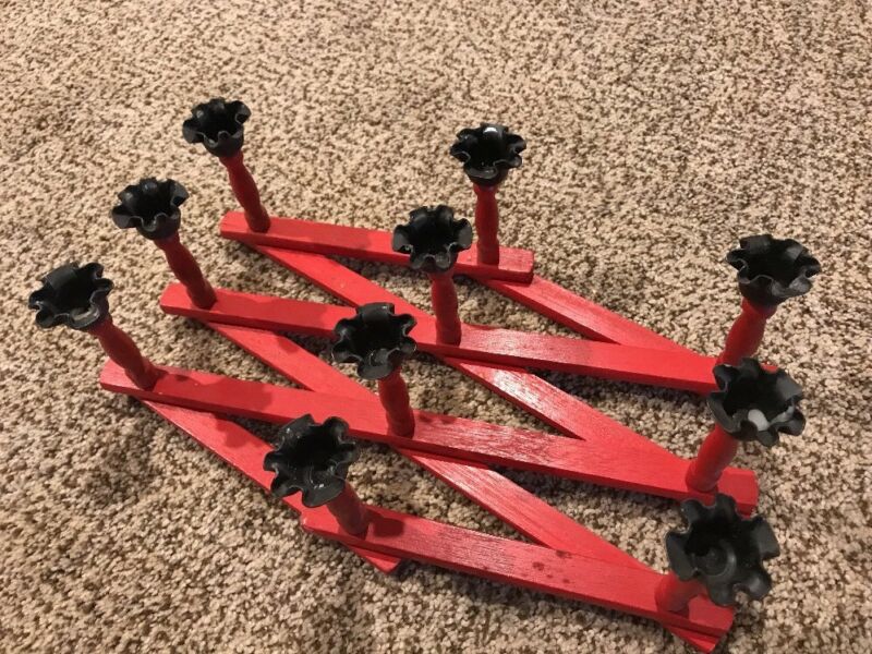 Title (ebay affiliate link): Vintage Primitive Painted Red Wood Accordion Folding Peg Rack Candle Holder