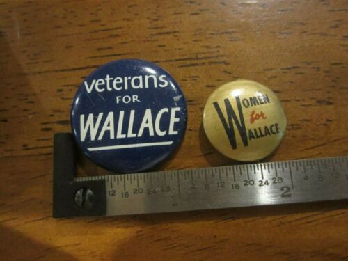 Title (ebay affiliate link): Lot of 2 Wallace 1948 political buttons Veterans For Wallace and Women Wallace