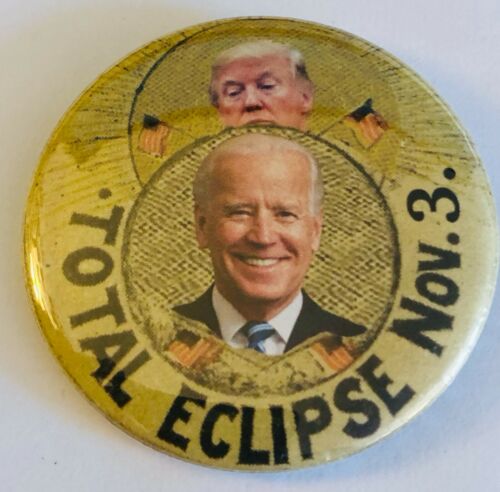 Title (ebay affiliate link): 2 1/4" Pro-Biden Total Eclipse Nov. 3rd Over Trump Campaign Pinback for Charity