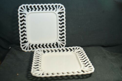 Vintage Lot of Two White Milk Glass Square Salad Plates